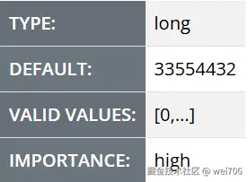 该配置项为一个整数,范围在 0 到整数的最大值,默认为整数的最大值。官方文档中指示该配置项重要性为高。