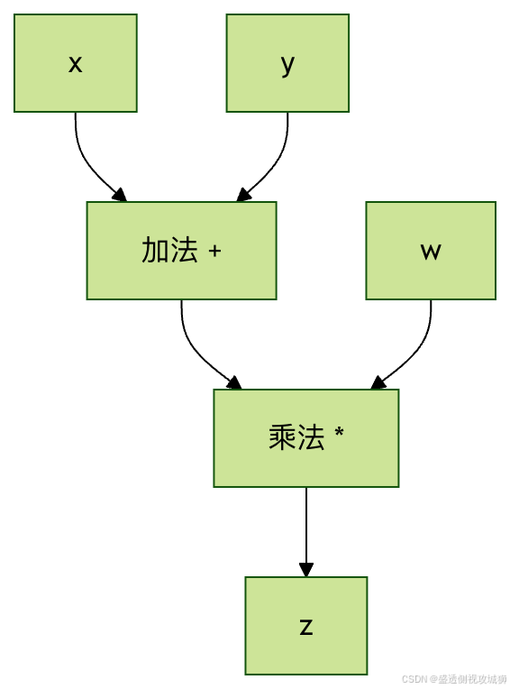 计算 z = (x + y) * w 的计算图: