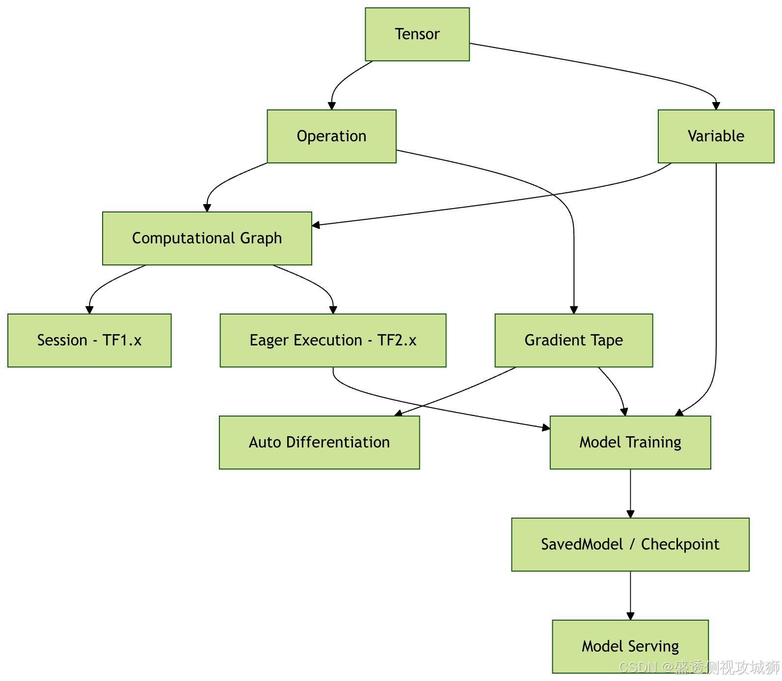 - TensorFlow 核心概念关系: