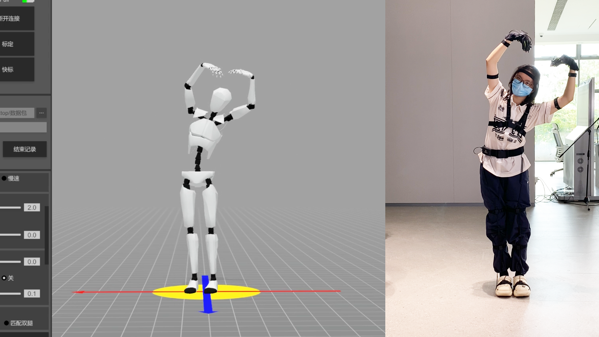 在机器人领域,动作捕捉技术正发挥着双重作用。一方面,通过采集人体动作数据并映射至机器人模型,可用于模仿学习与强化学习训练,显著提升机器人的动作自然度与适应性。另一方面,结合实时动捕系统,操作者可以第一人称视角远程操控机器人,实现"身外化身"般的遥操作体验,为高危作业、远程协作等场景提供了全新解决方案。