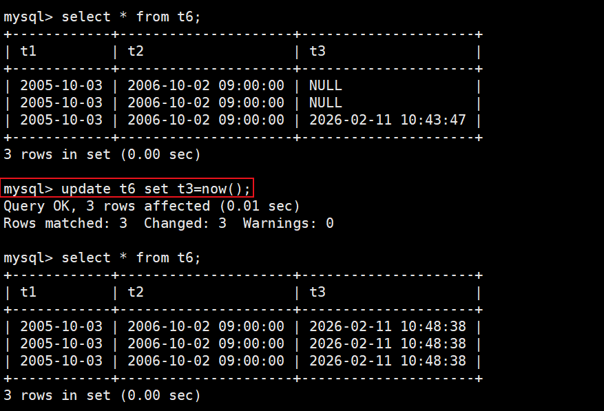 六、日期和时间类型
