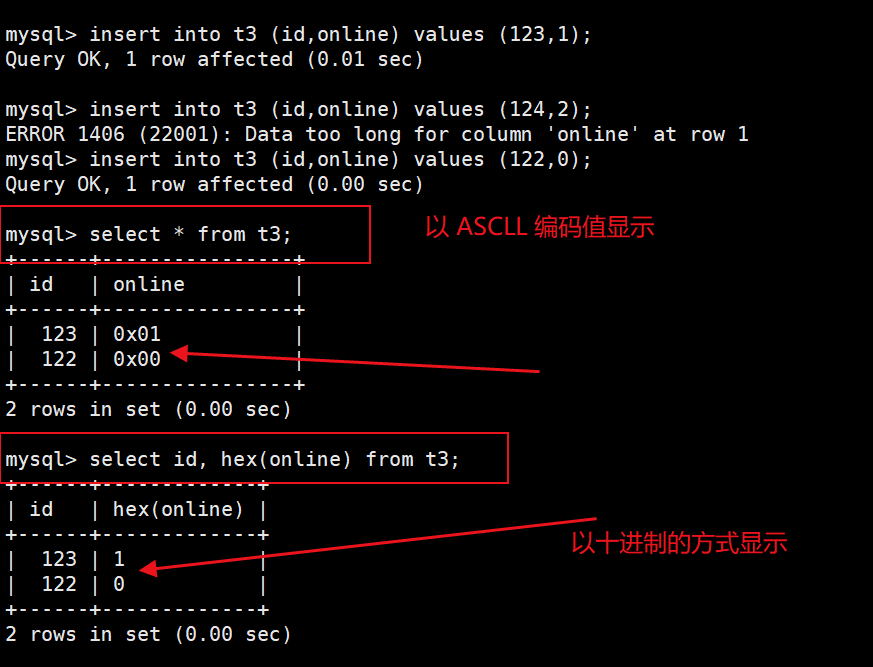 注意:bit 类型: