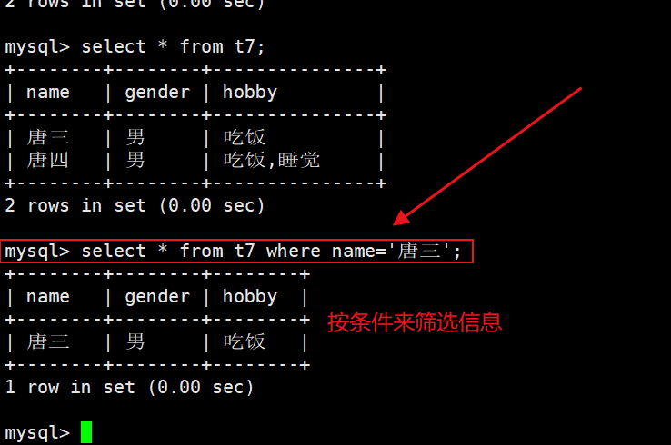 1)按条件来查找信息
