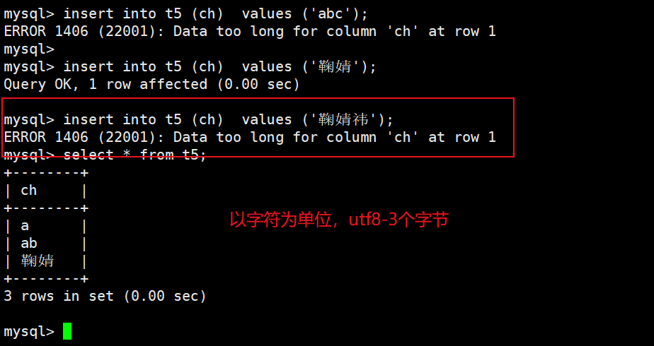 当我们的表的编码是utf8时,varchar(n)的参数n最大值是65532/3=21844[因为utf中,一个字符占用3个字节),如果编码是gbk,varchar(n)的参数n最大是65532/2=32766(因为gbk中,一个字符占用2字节)。