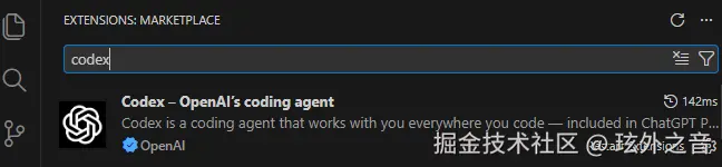 在 VSCode 插件市场搜索 "codex",点击安装。