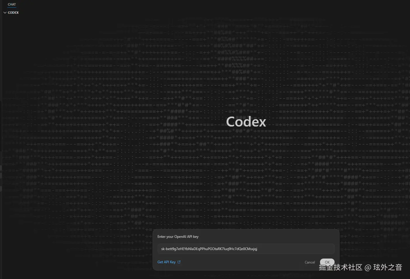 打开 Codex 登录面板,点击 Use API Key,直接粘贴密钥。