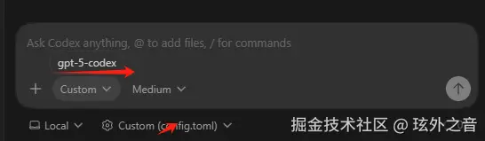 重启 VSCode,即可在 Codex 面板看到模型 gpt-5-codex 已就绪。