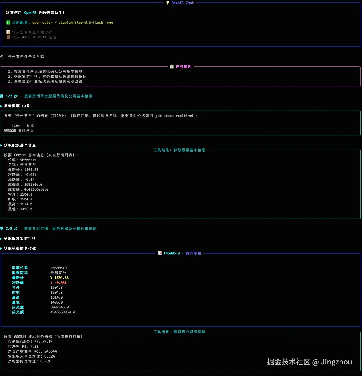 OpenFR (Open Financial Research) 是一个极简、轻量的智能金融研究 Agent,基于大语言模型并集成 AKShare 数据接口,提供股票、基金、期货、指数、宏观经济等金融数据的自动化查询和分析能力。