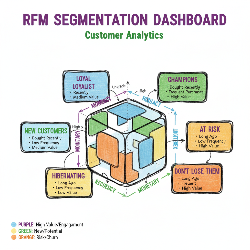 在本指南中,我们将详细介绍如何计算 Recency(最近性)、Frequency(频率)和 Monetary(金额)评分,并将客户群体细分为可操作的群组,如"Champions"(冠军客户)、"At Risk"(流失风险客户)和"New Customers"(新客户)。