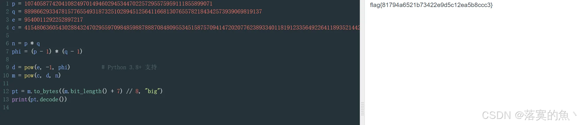 d = pow(e, -1, phi) # Python 3.8+ 支持