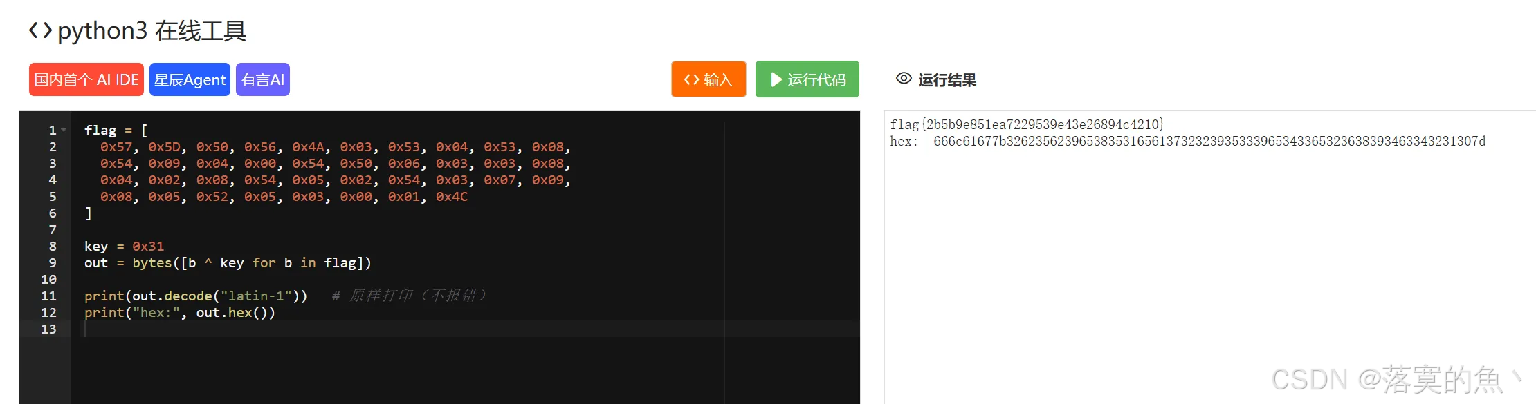 查看伪代码,flag每个值和0x31异或 写个脚本