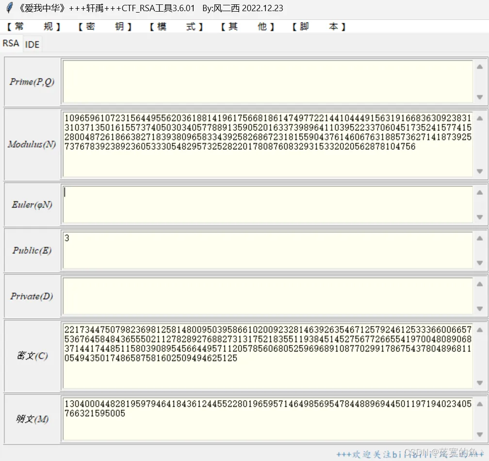 已知N、e、c或已知p、q、e、c求m