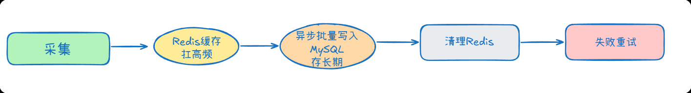明确Redis不仅能扛高频采集,自身也具备临时持久化能力;