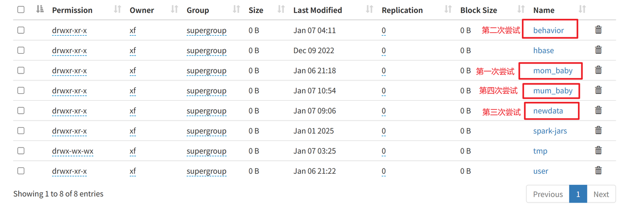 经历了四次建表建仓,如图,只有最后一次成功了,接下来将说一下具体过程: