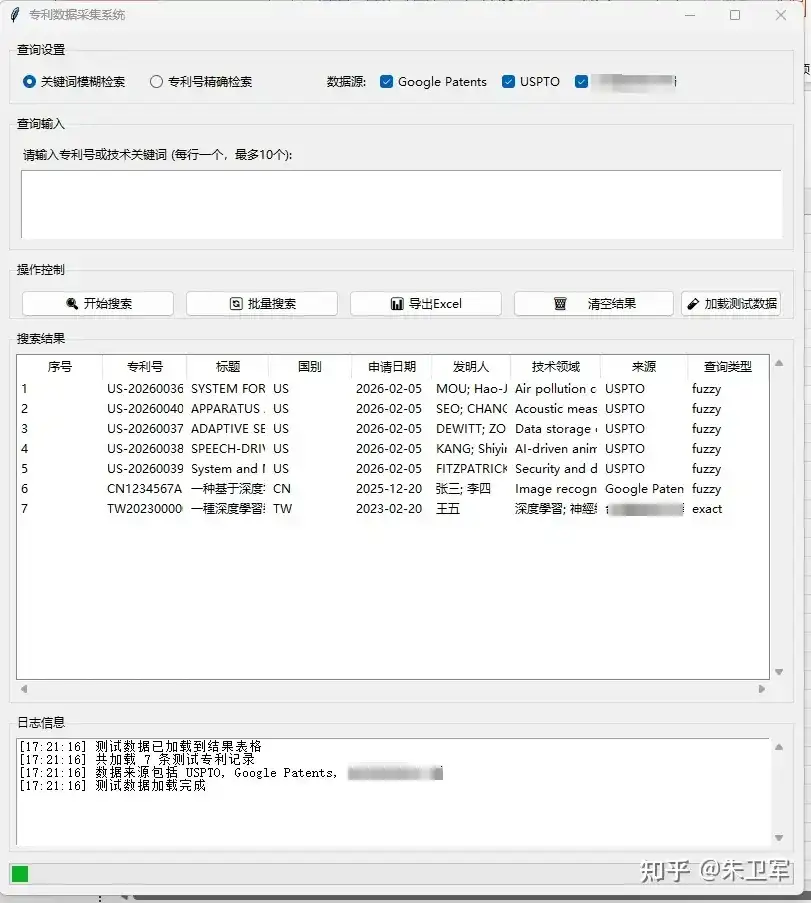 这几天我刚好用tkinter搭建了一个数据采集工具,可以自定义去采集各大专利网站的专利数据,对专利相关的行业挺有用的,界面如下: