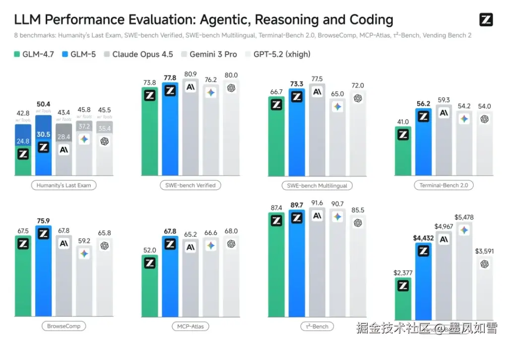 这个测试考的不是算术,而是长程规划、资源管理和策略调整。大多数模型在这个测试里撑不过一个月就会破产,但GLM-5不仅活下来了,还赚了钱。这证明了它具备了处理复杂长链路任务的"Agent(智能体)"能力,这才是通往AGI的门票。