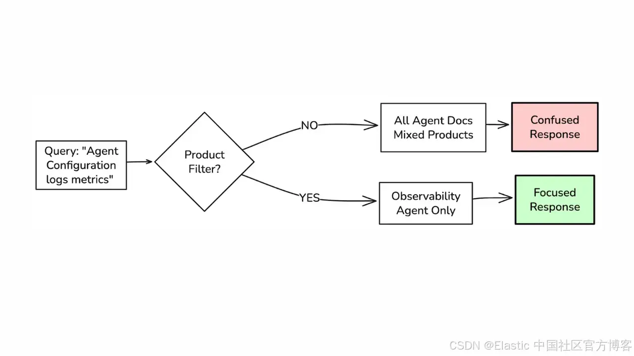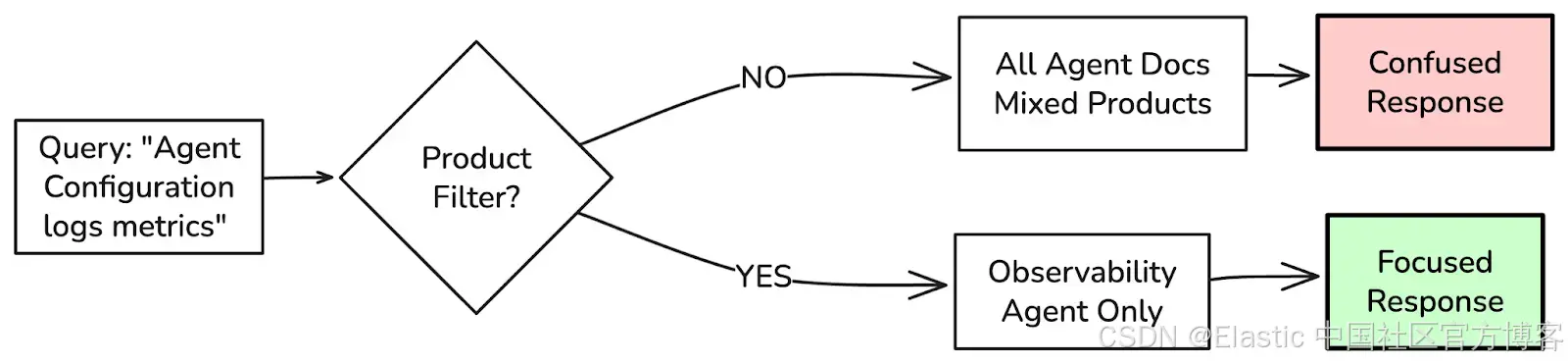 - 向量相似搜索可能检索到语义相关但上下文无关的文档。在将结果送入 LLM 前,对 product、category 或 domain 字段应用显式过滤,将结果约束到合适的上下文。详细信息请参考 [生产环境中的 RAG 流水线:将你的 GenAI 项目落地 - Elasticsearch Labs]。
