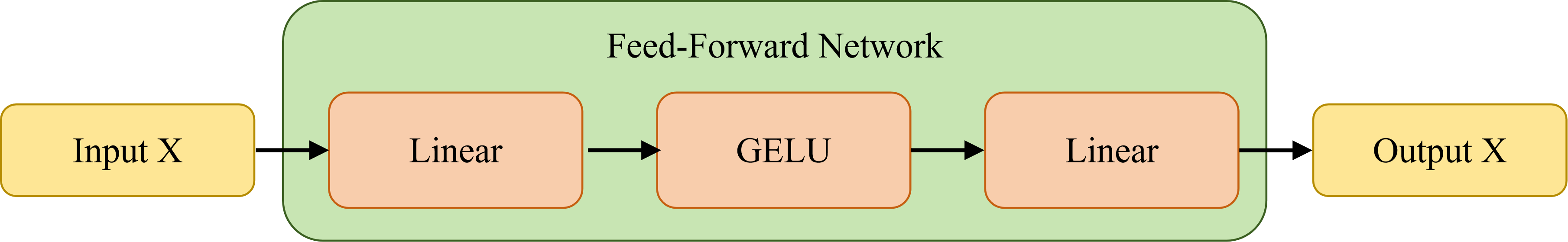 前馈神经网络层(feed-forward network)比较简单,有两个线性层组成,中间的激活函数使用的是GELU