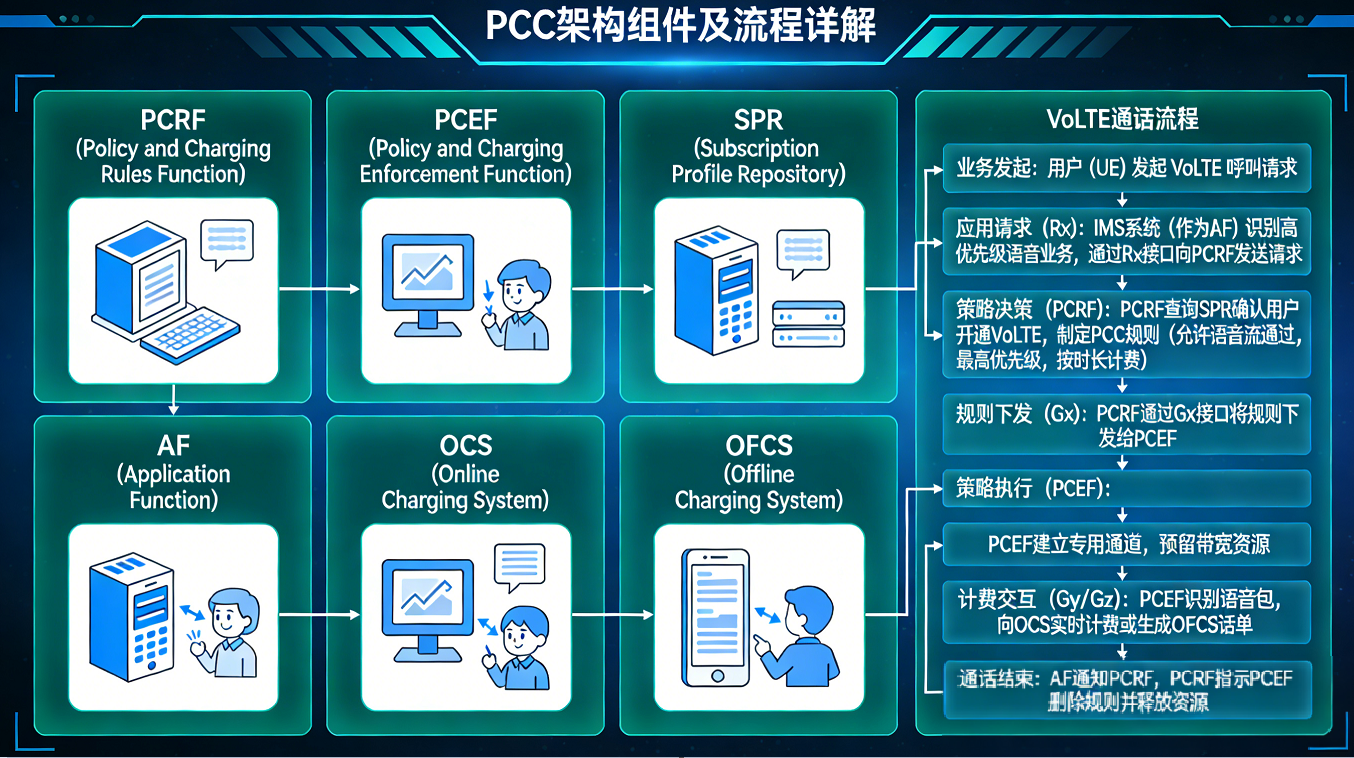 那么 PCC 就是这个系统中的智能交通管理中心+动态收费系统的合体。它不仅要确保"重要车辆"(如游戏数据、视频通话)走快速通道,还要根据你的"行驶套餐"(资费计划)实时计费,并在需要时引导你升级服务。