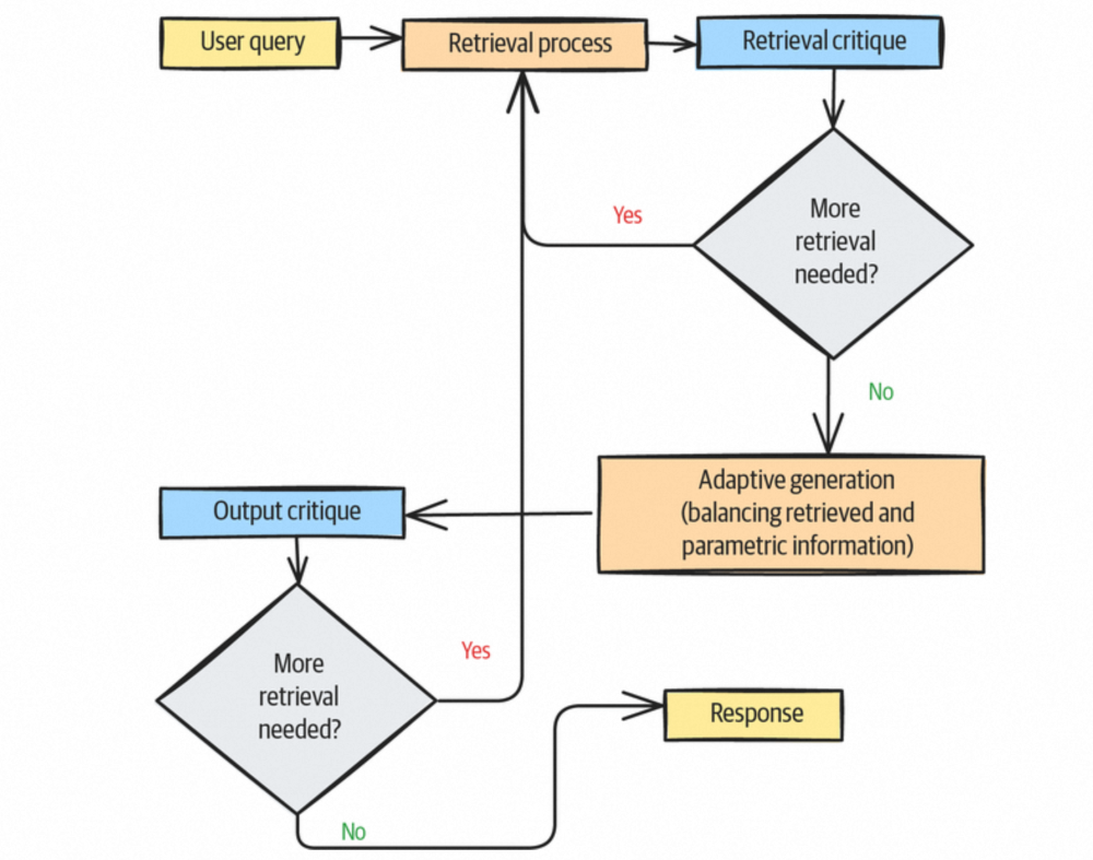 首先先来介绍下带自我批判的RAG,也称Corrective retrieval-augmented generation (CRAG),主要解决两个问题: