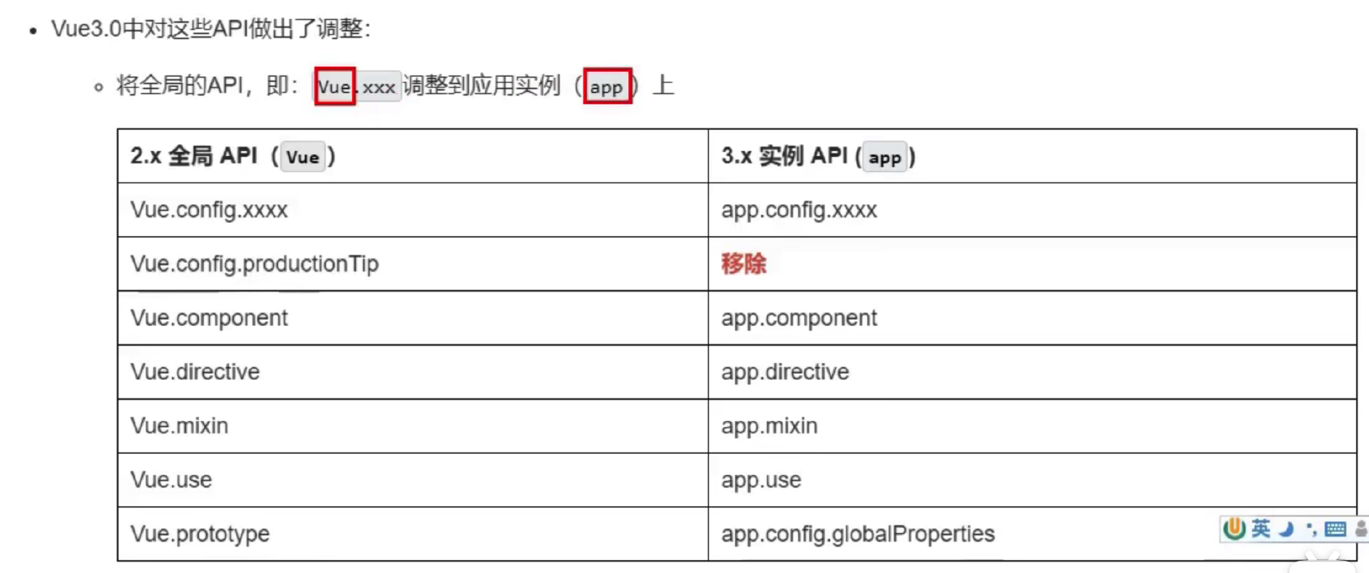 vue3.0中对这些API作出了调整: 将全局的API(Vue.xxx)调整到应用实例(app)上