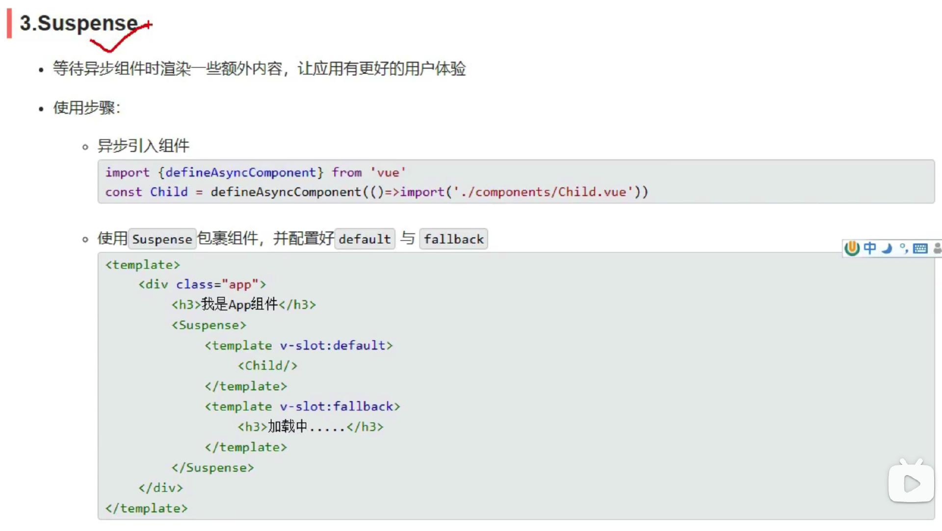定义: 等待异步组件时渲染一些额外的内容,让应用有更好的用户体验