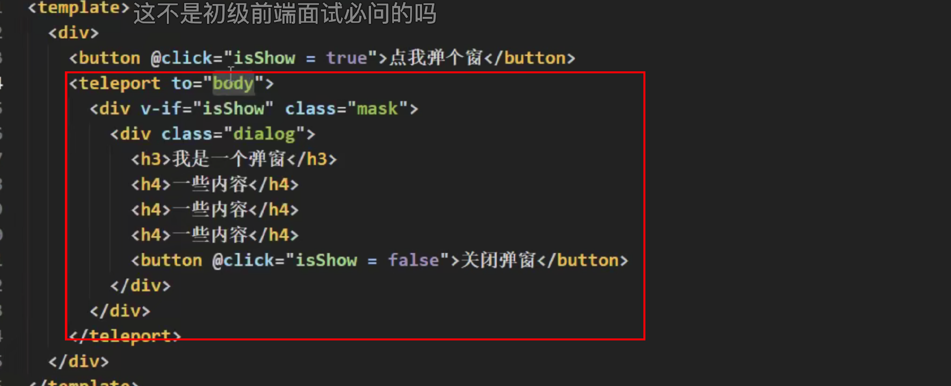 定义:teleport是一个能够将我们的组件htm结构移动到指定位置的技术