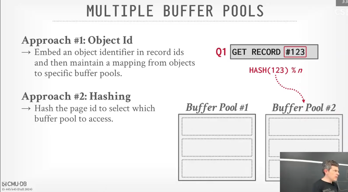 首先是采用多Buffer Pool实例 。在单一 Buffer Pool 设计中,所有线程会共享页表,驱逐链表,元数据结构等临界资源,随着并发度提升,这些资源会成为严重的 latch 争用热点。为了解决这个问题,工业系统通常采用 Buffer Pool 分区 :将整个缓冲池划分为多个独立实例;且每个实例拥有独立的页表、替换结构与锁;通过哈希(通常基于 PageID)决定某个页面归属于哪个实例。例如 InnoDB 允许配置多个Buffer Pool 实例,每个实例管理一部分内存空间。这种设计的本质是:用空间换并发,通过减少共享结构,降低 latch争用。其代价是可能降低全局替换决策的最优性,因为每个实例只看到局部页面。但在高并发 OLTP 场景下,这是值得的工程折中。