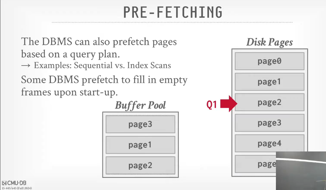 第二种优化策略是预取(Pre-Fetching) 。数据库不同于操作系统的一个关键点是: