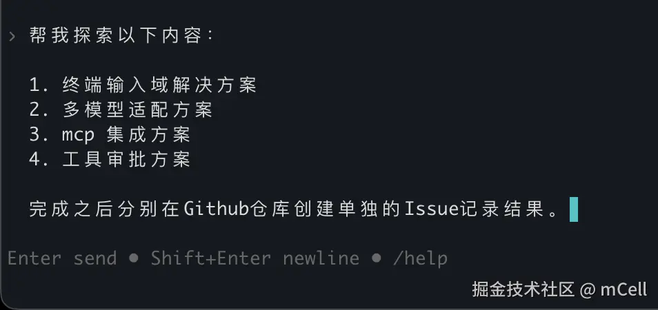 但在终端里,多行输入并不是默认就"应该支持"的体验。甚至 Ink 的 input 组件,也只有单行。