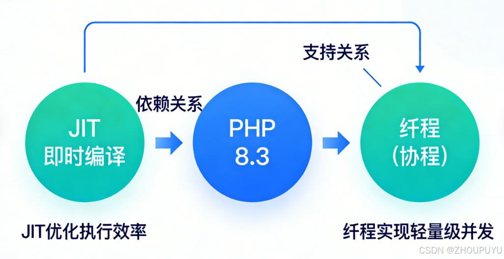转机出现在PHP 8.3:其JIT(即时编译)能将热点代码转为机器码,而纤程支持无栈协程------这正是我们急需的异步改造基础。