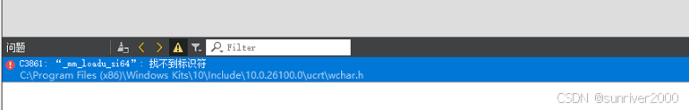 问题1、C:\Program Files (x86)\Windows Kits\10\Include\10.0.26100.0\ucrt\wchar.h:316: error: C3861: "_mm_loadu_si64": 找不到标识符
