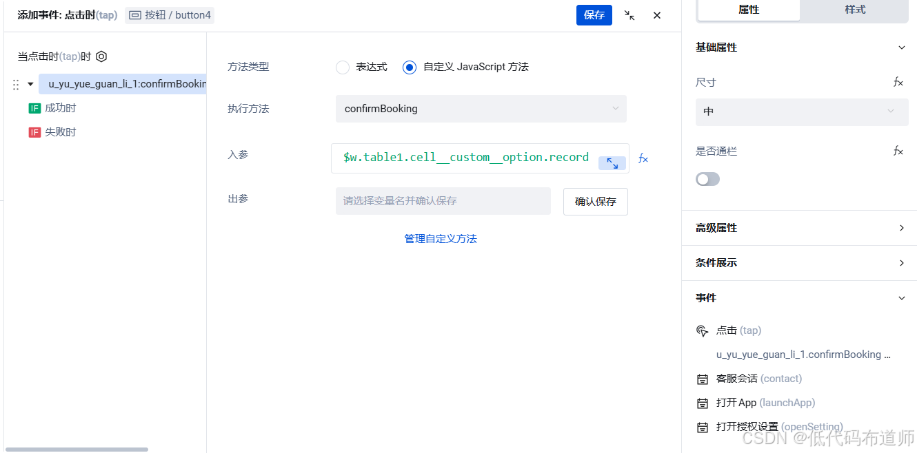 给按钮配置点击事件,调用我们的方法,传入所在行的数据