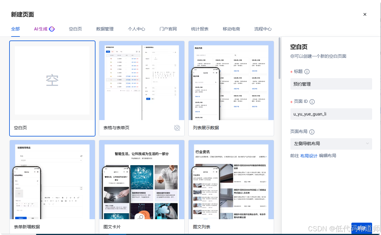 按照同样的操作继续创建预约管理,数据模型选择预约表
