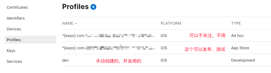 - App Store Profile:用于发布到 App Store/TestFlight;