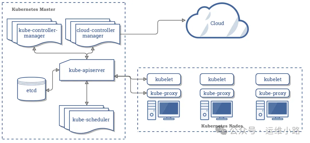 注:Master 节点同时也是特殊 Node,同样运行 kubelet 与 kube-proxy。