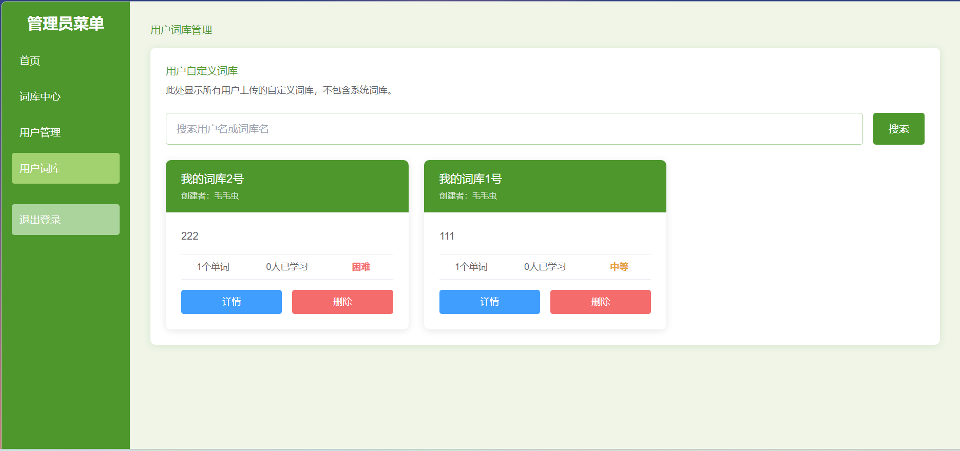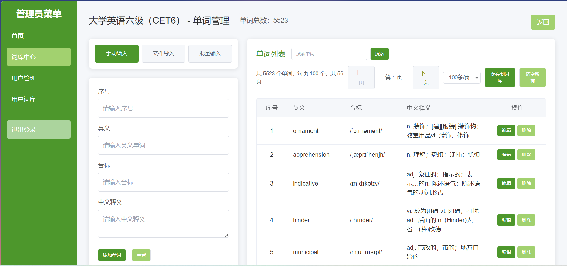 实现单词的添加、编辑、删除和查询功能