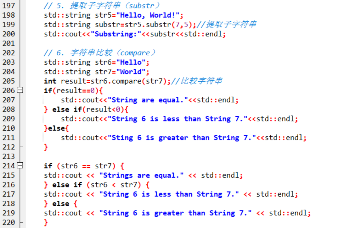 - 字符串比较:①用一个变量接收compare函数的返回值,等于=0,小于<0,大于>0。②更简单直接使用==,>,<