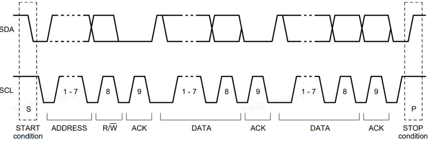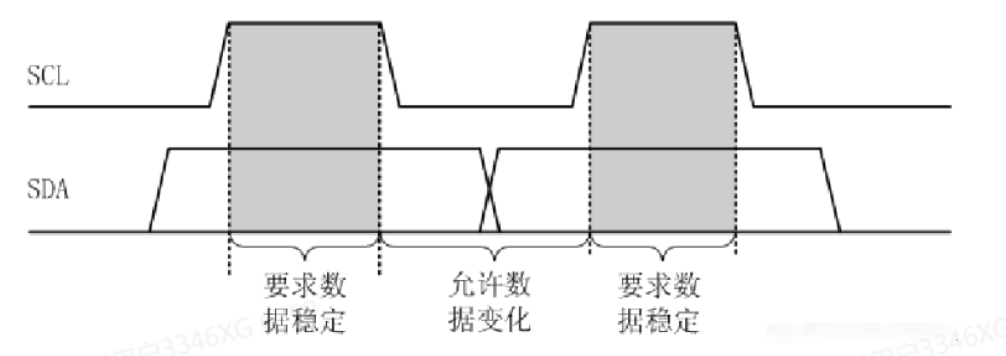数据传输:IIC总线进行数据传送时,时钟信号为高电平期间,数据线上的数据必须保持稳定,只有在时钟线上的信号为低电平期间,数据线上的高电平或低电平状态才允许变化。