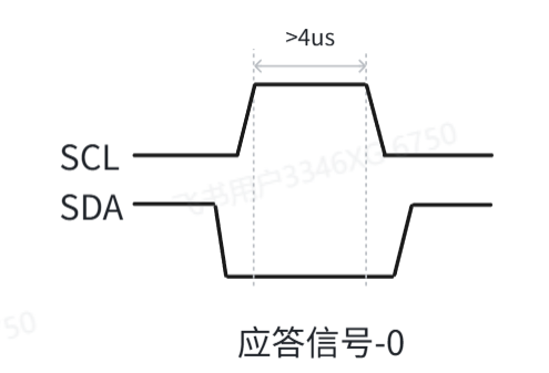 ACK应答信号 :SCL从低到高再到低时,SDA都为低,表示接收方成功接收字节,要求继续传输。
