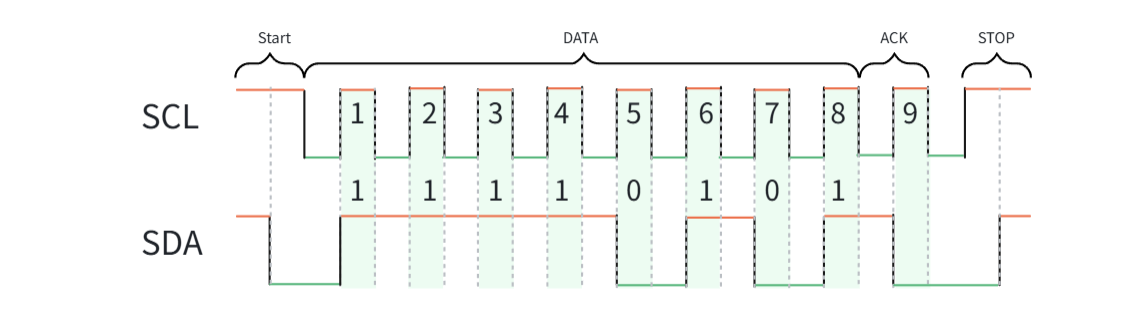 发送数据前要先发送起始信号,告知总线和从机开始通讯