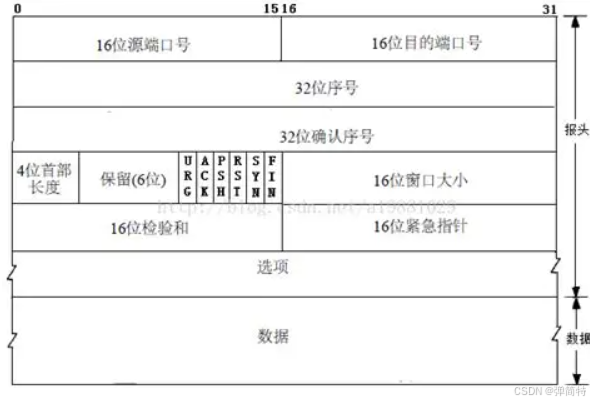 我们从上面的图中是可以看到的,这个4位首部长度是4bit,那4bit他是0~15的一个位数。在我们tcp的报头中,除了选项这样一个属性之外,固定部分长度总共是20字节。那么如果我们再算上这个选项的话,肯定用这15个比特是不能表示的呀。其实tcp他有一个独特的技巧,他在表示报文长度之时,不是使用字节为单位。而是使用"