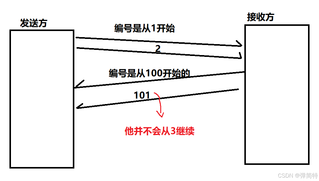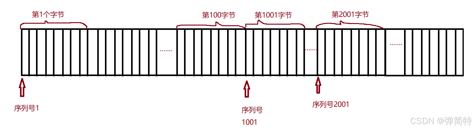 这里我们举的这个例子其实是比较简单的,它呢是按照条(一条一条的数据)去编号的。但是我们真实的TCP并非如此,我们TCP是使用字节流的,TCP实际上是针对每个字节进行编号的:用连续递增的整数来对数据进行编号。