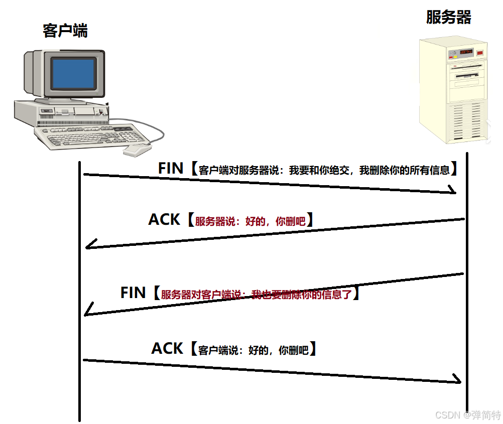 最后客户端说,哎,你服务器要把我的信息删除,可以可以的。客户端回复一个可以,之后呢双方就分别加对端的关键信息给删除掉,此时我们的连接就断开成功。