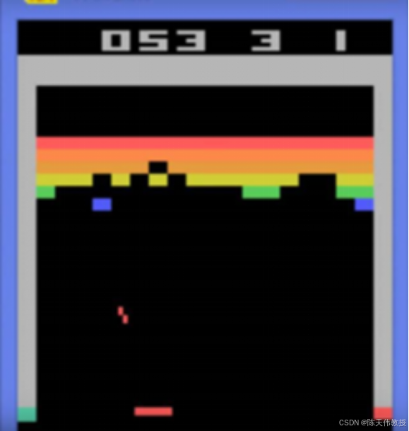 例如,在经典的《Breakout》游戏中,玩家控制一个托板接住掉落的小球,使其反弹并击碎彩色壁板,得分取决于击碎的壁板数量。要掌握这款游戏,机器首先需要"观察"屏幕,准确识别小球和托板的位置、壁板的破裂情况等。基于这些观察,机器还需要实时预测小球轨迹,并迅速生成控制托板的动作,以确保小球不会掉落。