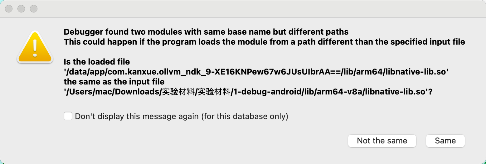 6.之后会弹出一个框,显示两个so文件是否相同,点击same即可。