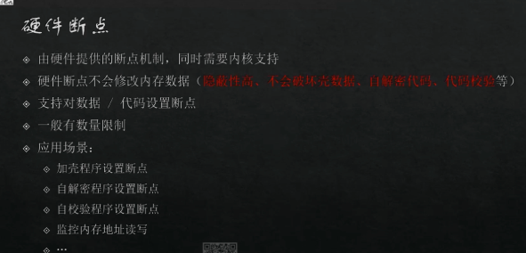 硬件断点不会修改内存数据