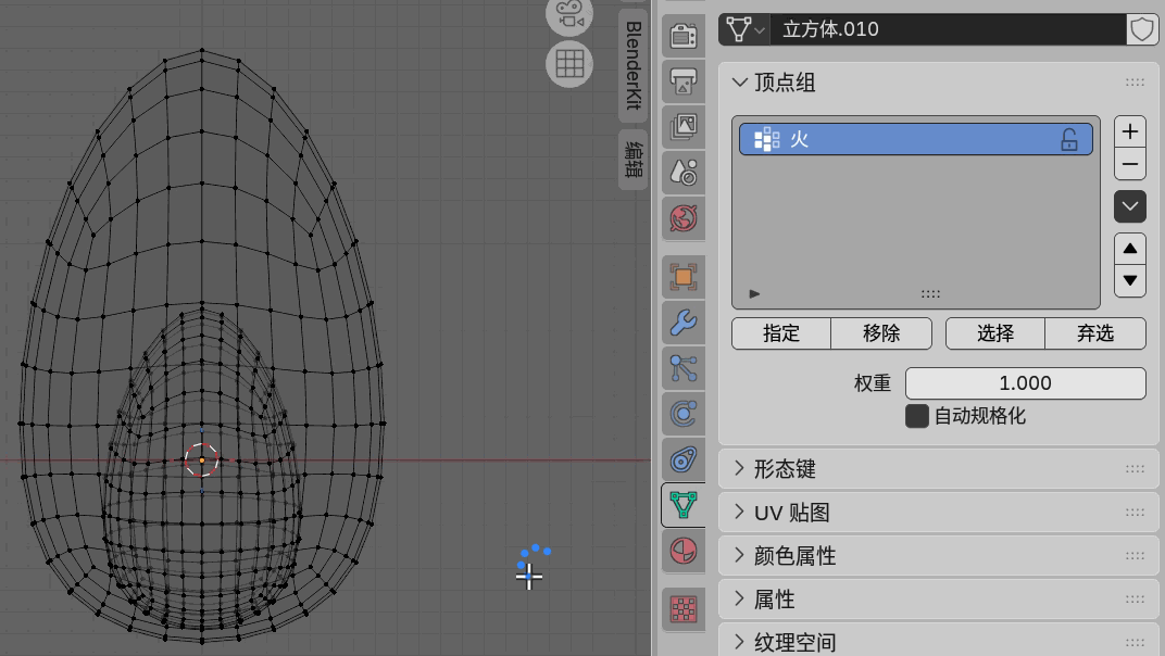 选中顶点,添加顶点组,指定