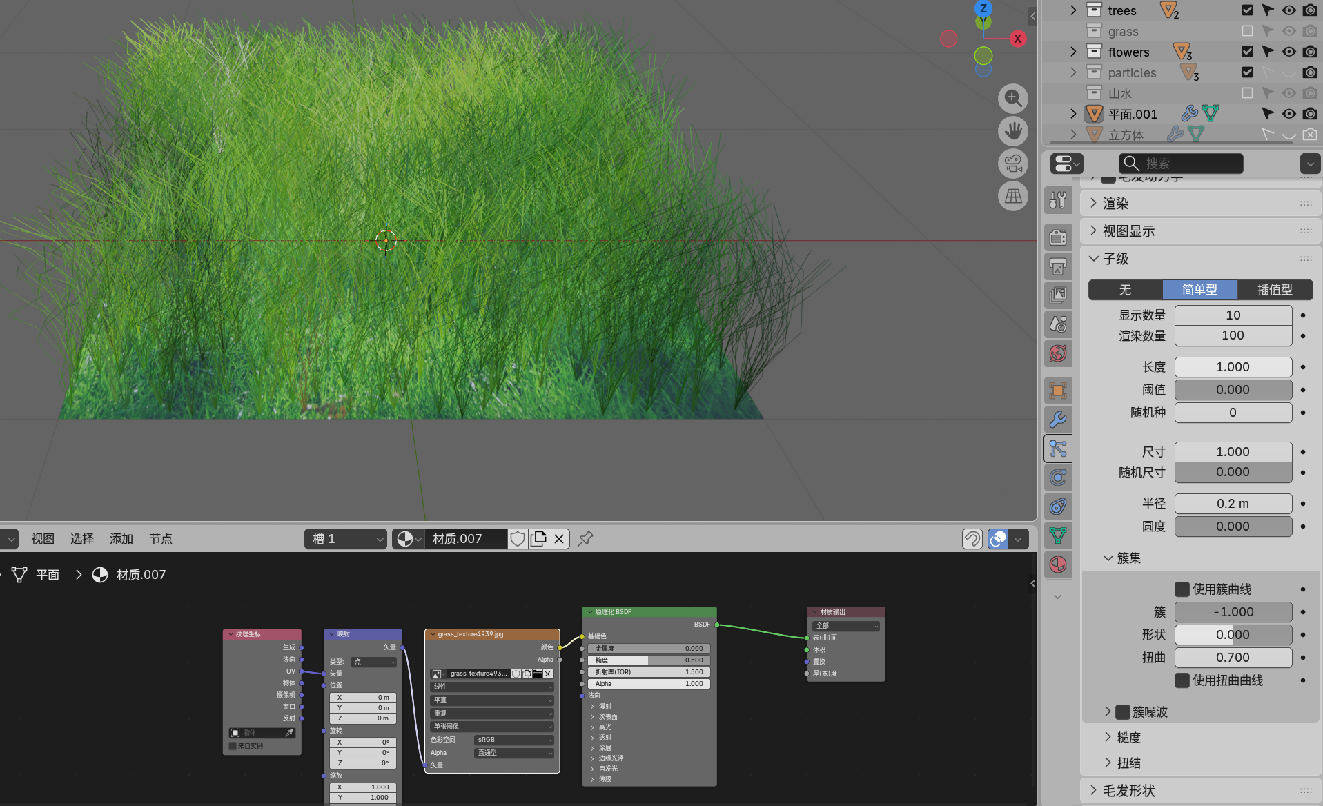 创建平面,添加材质,簇为-1